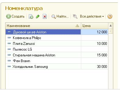 В результате мы получим список номенклатуры, выводящийся вместе с ее актуальной ценой.